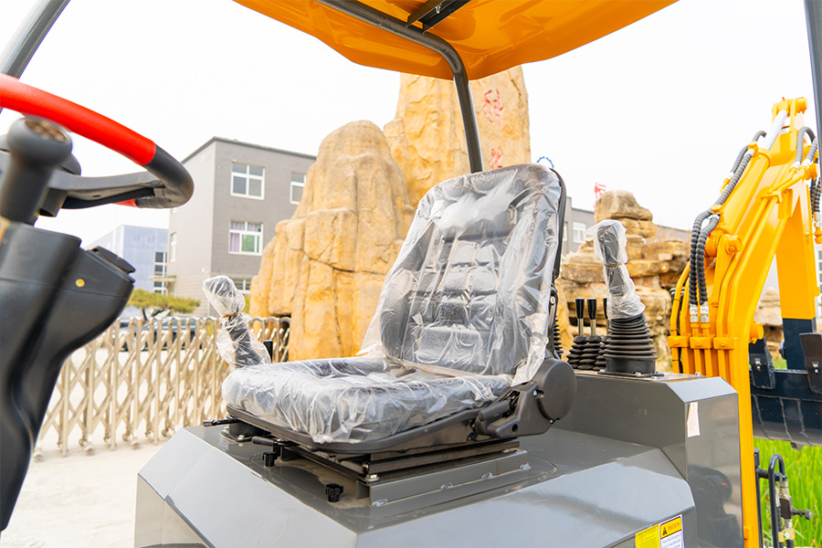 The suspended shock-absorbing 360-degree rotating seat with a seat belt improves the comfort and safety of the driver.